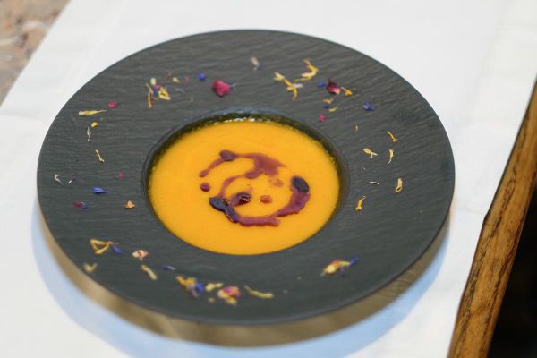 Bučna juha s krotončki,sladica